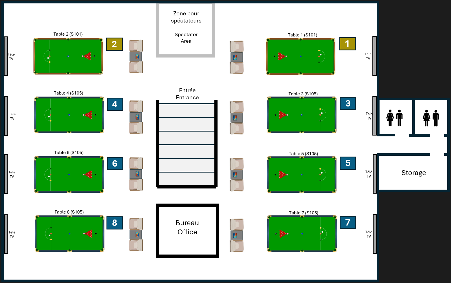 Modèle S101 (tables #1 et #2 - tables de compétition)